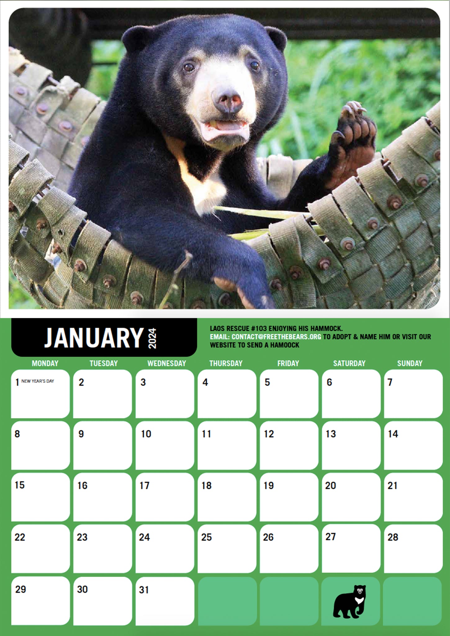 2024 Wall calendar – Free the Bears